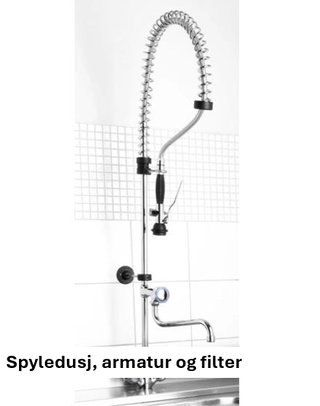 Spyledusj, armatur og filter